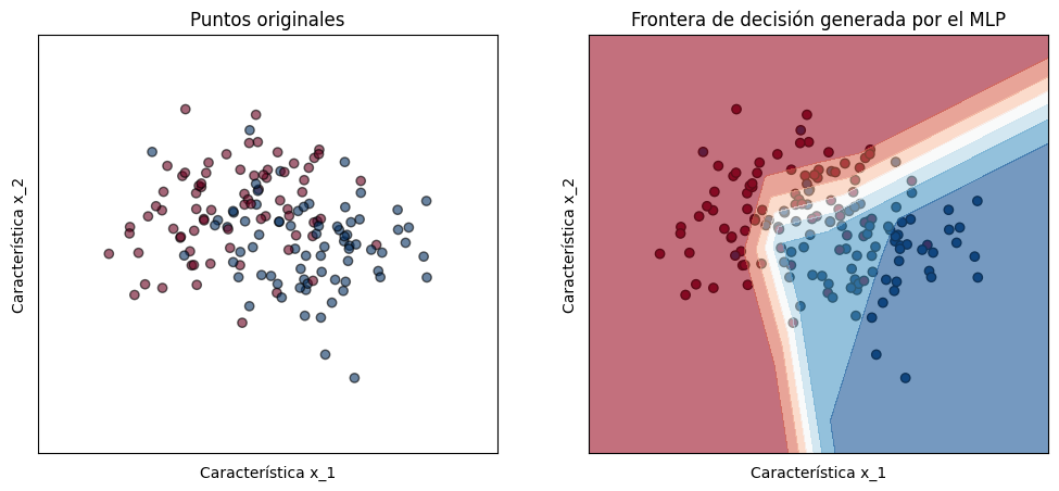 ax[1].set_title('Frontera de decisión generada por el MLP')